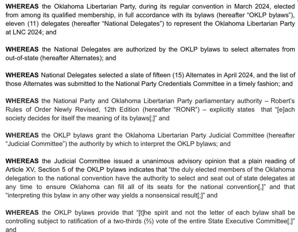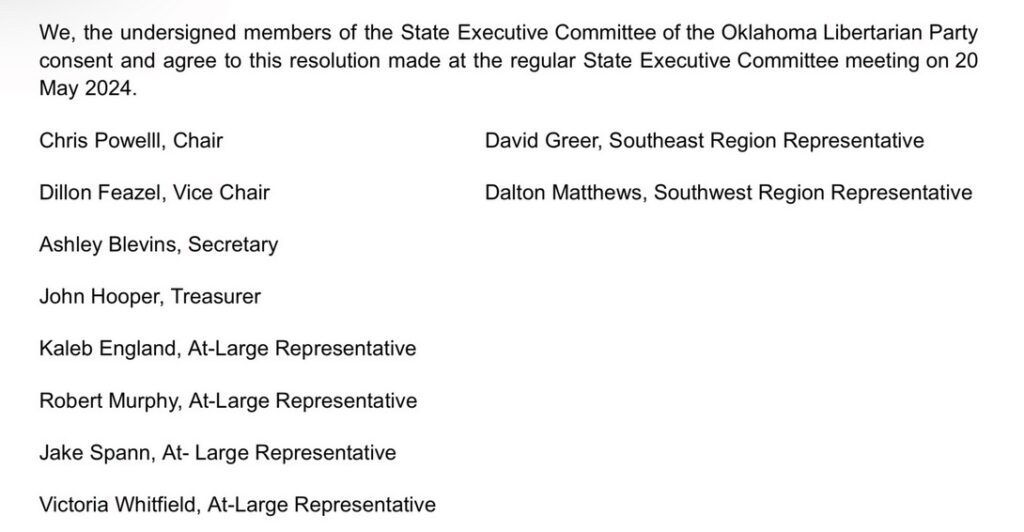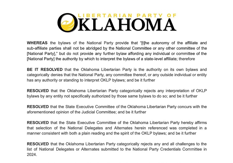LP Oklahoma Rejects LNC Attack on Its Delegation