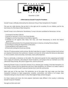 Readers who believed that the LPNH was a legitimate affiliate should this about this. Note LP Bylaws 5.4: “No affiliate party shall endorse any candidate who is a member of another party for public office in