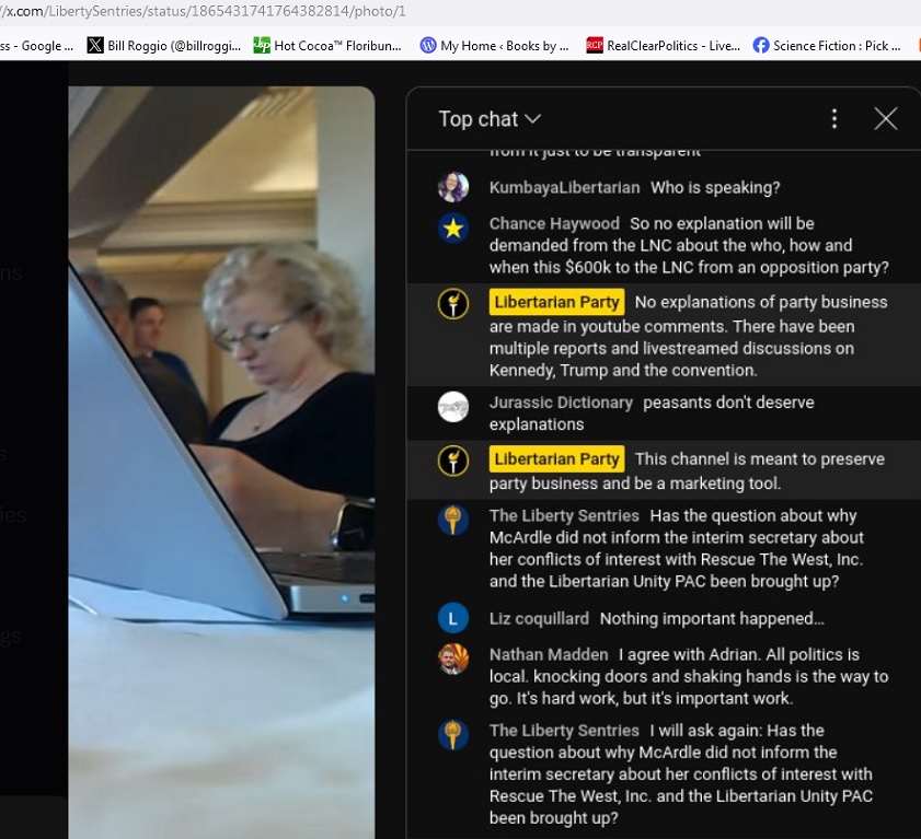 In the image, the young lady on the left is an LNC member. Note in particular the questions from Chance Haywood and from The Liberty Sentries. And what was the fate of the questions? I gather that they tended to be deleted.