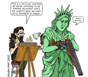My attention was drawn by a political cartoon seen on Facebook, on a usually calm page from a usually calmer poster.  The direction is inadvisable, but may be where we are going.  I do not havea  link to the original artist, whose name I cannot read.  This parties wishing to avoid this direction might usefully speak up more vigorously in favor of civil liberties.