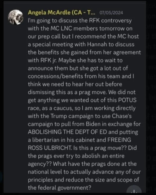 Why was it so important for Chair McArdle and the Libertarians for Kennedy to put Kennedy on the Libertarian Party ballot line when he was on track to get ballot access on his own? Why did McArdle, who had the fiduciary duty to ensure the will of the delegates, attempt to sabotage the party by refusing to help put the nominee on the ballot?